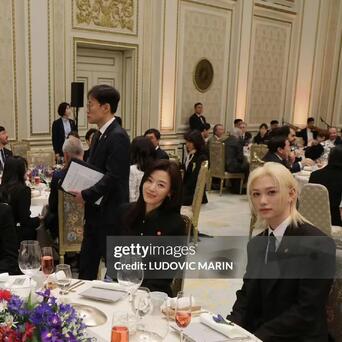 全智贤和李龙馥被同时任命为宣传大使,座位被安排在一起,但是马克龙只夸了李龙馥,合影时也一直握着他的手,在合影时还占据C位,超级有面子。
